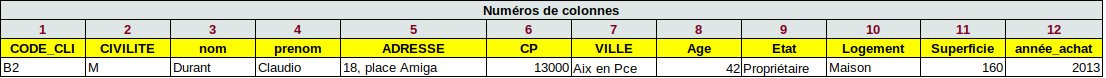 Pour les celulles C16 à G16 il suffit de recopier et de modifier l'item Indice ou N0 colonne