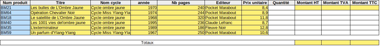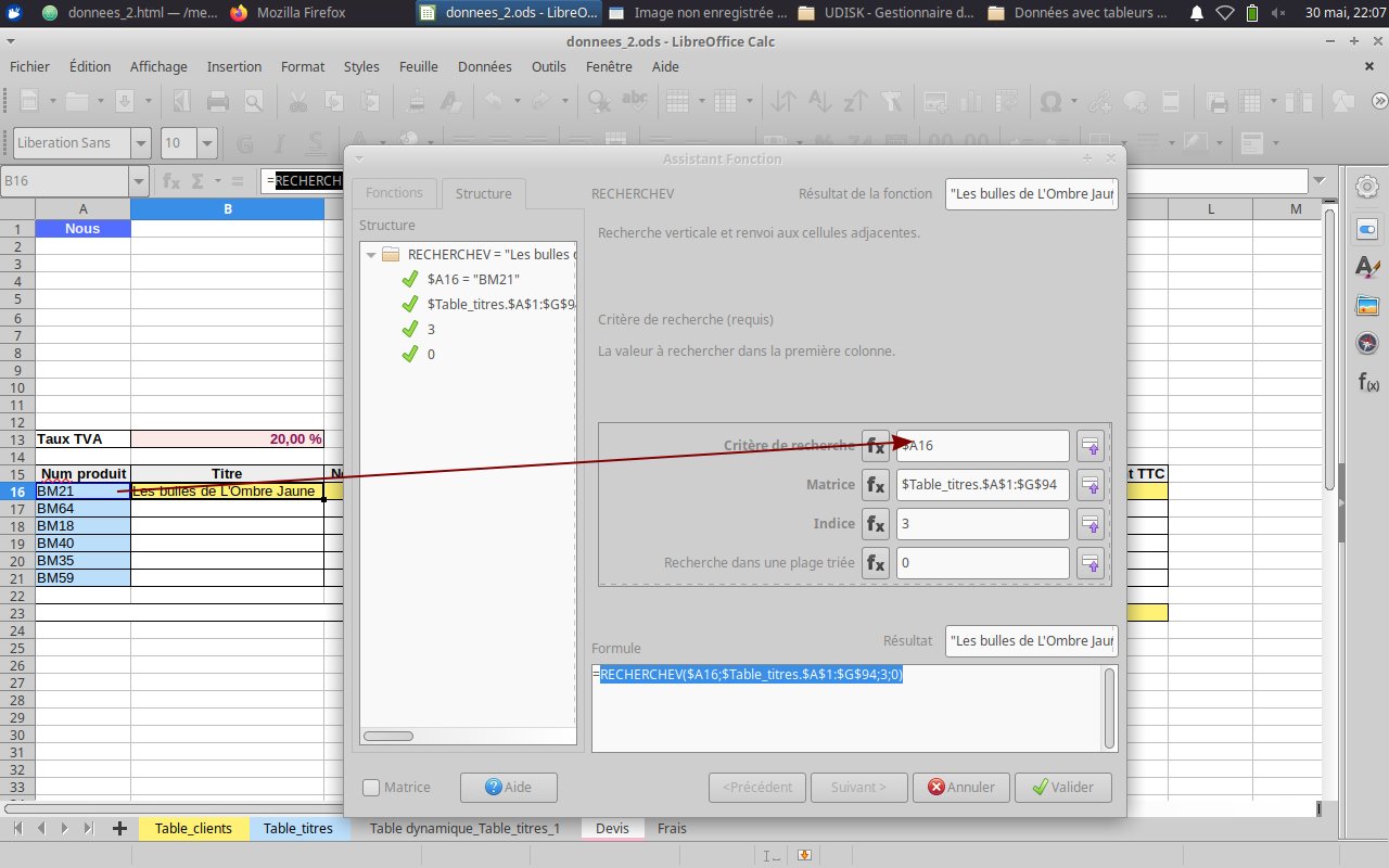 Positionnons nous en B16 at activons RechercheV pour récupérer les informations sur les titres commandés: